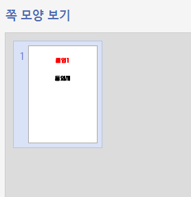 그럼 '쪽 모양 보기'창이 뜨는데요