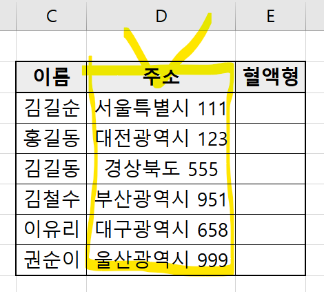 '주소'열의 칸이 좁아서 글자가 다 보이지 않는 문제 가 발생합니다